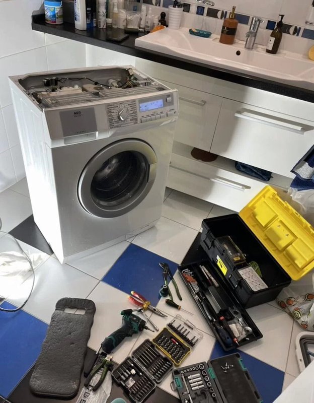 Мастер приезжал на дом чинить стиральную машину. Барабан перестал вращаться прямо во время стирки. Специалист быстро нашел причину в износе щеток мотора и заменил их. Всё снова работает.